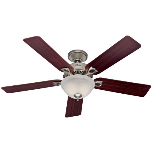 Save Hunter 28675 Dominion 52-Inch 5-Blade Single Light Ceiling Fan, Brushed Nickel with Cherry/Maple Blades and Frosted Glass Bowl